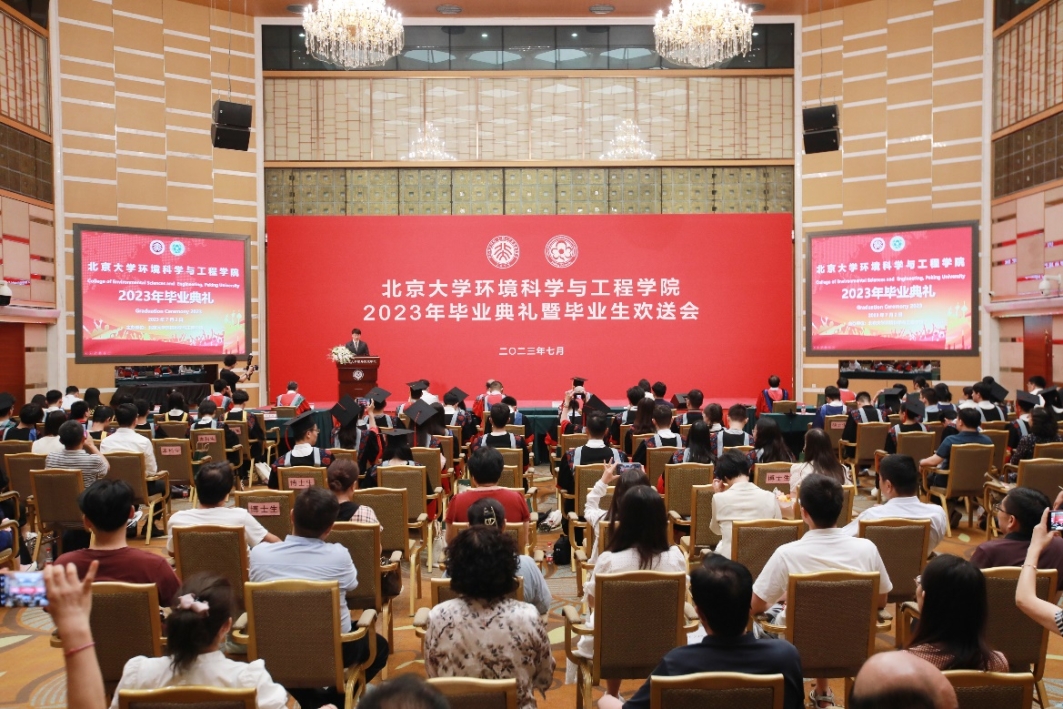 7月2日上午,环境科学与工程学院2023年毕业典礼在北京大学英杰交流中心阳光厅举行。学院院长朱彤,党委书记李振山,副院长王奇、李天宏、刘永,党委副书记陆克定、王浩,校友代表、中国农业科学院农业环境与可持续发展研究所研究员李红娜,毕业班班主任邱兴华、刘颖君出席典礼。参加典礼的还有学校教师代表、毕业生亲友代表等,他们与2023届全体毕业生共聚一堂、分享喜悦,重温昨日初相遇,祝福明朝新征程。典礼由王浩主持。