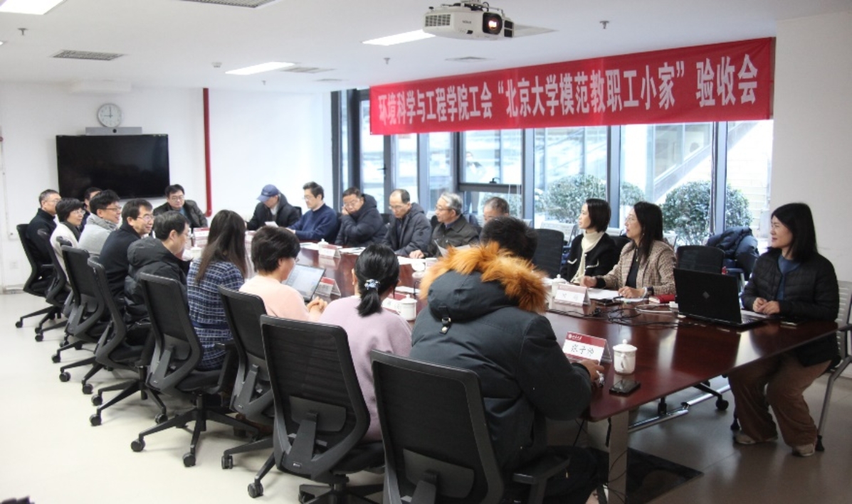 2023年12月20日上午,校工会验收组到环境科学与工程学院进行“北京大学模范教职工之家”验收。验收组成员包括北京大学校务委员会副主任兼秘书长、工会主席安钰峰,校工会常务副主席张宝岭,校工会副主席丁伟忠、张小萌、田越,校工会兼职副主席、财务部部长孙智利,哲学系工会主席王骏,艺术学院工会主席邱章红,燕园街道办事处工会主席杨跃平。环境科学与工程学院党委书记李振山,党委副书记、副院长陆克定,工会主席张剑波,工会副主席占子玉和学院工会委员及教师代表等参加验收会。会议由田越主持。