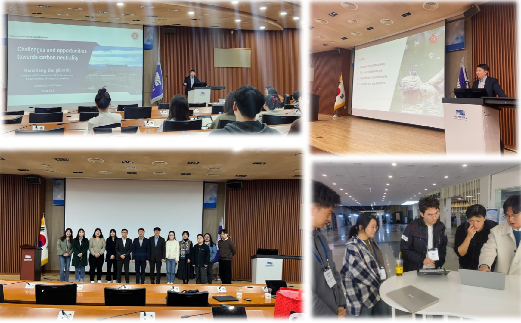 11月5日,应首尔大学校长助理兼科研规划处处长Park Chan教授邀请,戴瀚程研究员在首尔大学大礼堂发表了题为“碳中和的挑战与机遇”的主旨报告。报告中,戴瀚程研究员深入地剖析了当前气候变化及温室气体排放的现状,阐述了实现碳中和目标的紧迫性与重大意义。他强调,近十年来,北京大学LEEEP课题组与首尔大学Park教授团队在碳中和领域一直保持着深度交流与合作,双方在模型建构与政策支持方面的经验共享不仅推动了各自研究的进展,也为未来进一步协作奠定了坚实基础。