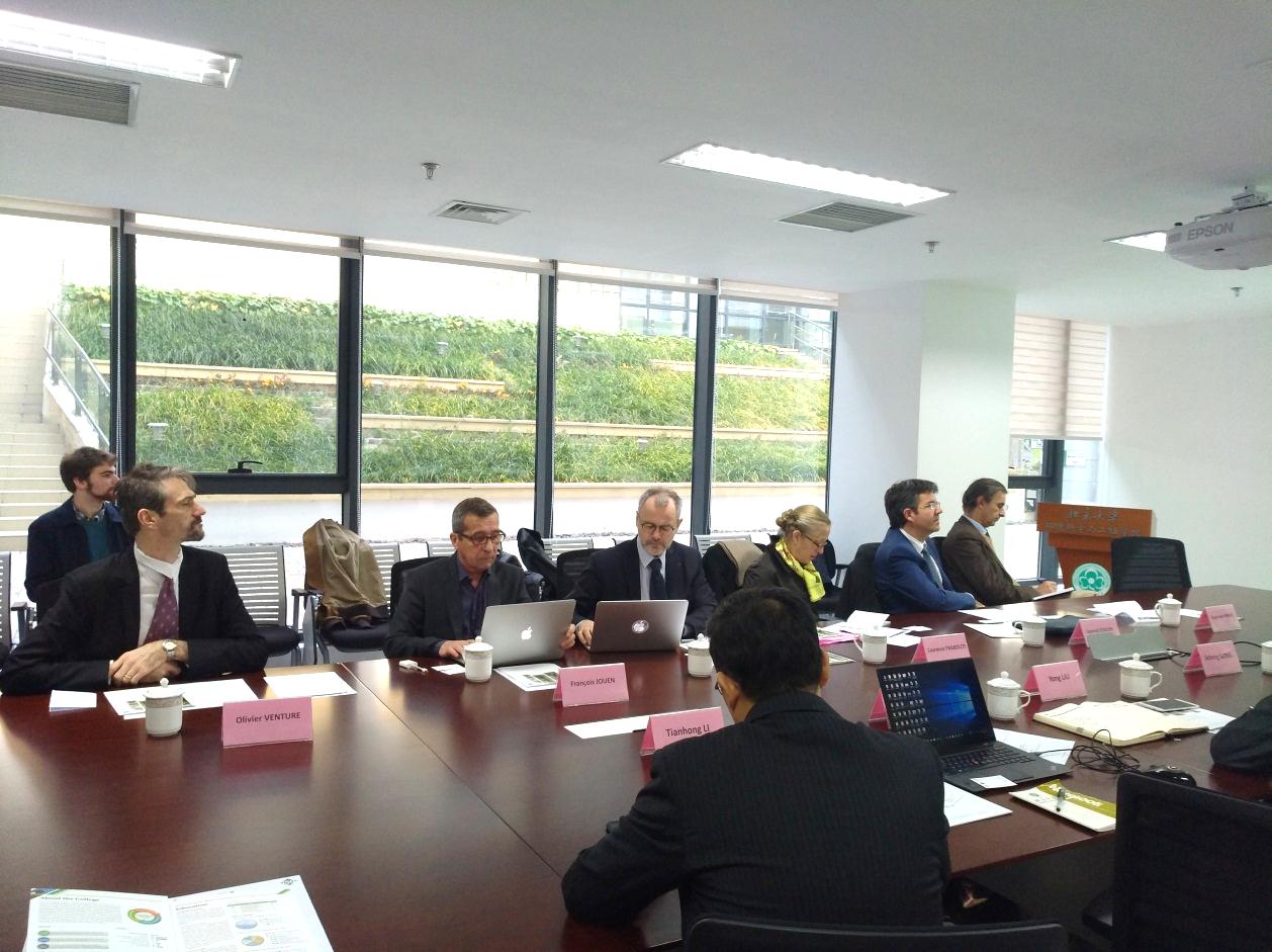 2017年11月7日上午,法国高等研究实践学院(EPHE)校长Hubert Bost一行访问北京大学环境科学与工程学院,随行的还有该校国际事务副校长Laurence Frabolot以及François Jouen、Laurent Coulon、Stéphane Verger、Olivier Venture等教授。学院院长朱彤教授、助理院长刘永、环境工程系主任李天宏、环境科学系研究员宫继成等接待了来宾。