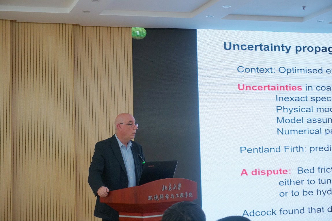 6月10日下午,由中国科学院院士倪晋仁教授主持的“环境科学与工程学科杰出学者系列讲座之院士学术沙龙”在环境大楼多功能报告厅拉开帷幕。该学术活动吸引了我院和来自清华大学、北京师范大学、中科院过程所、中国农业大学、美国佐治亚理工学院的20余名学者及40余名学生参加。首先,Alistair Borthwick教授为大家带来了题为“Uncertainty and Chaos in Environmental Flows”的报告,从古希腊和西方神话出发,触类旁通进行类比,生动形象的就环境流中的不确定性和混沌流进行了阐述,深入浅出的介绍了水力学工程中不确定性和环境工程中混沌对流的数值模拟方法、适用性、实用性等,并结合实际流域案例对此进行了直观描述。与会师生与学者就流场中颗粒的生长、水力学模型架构方法和准确性等与Alistair Borthwick教授展开了热烈讨论。