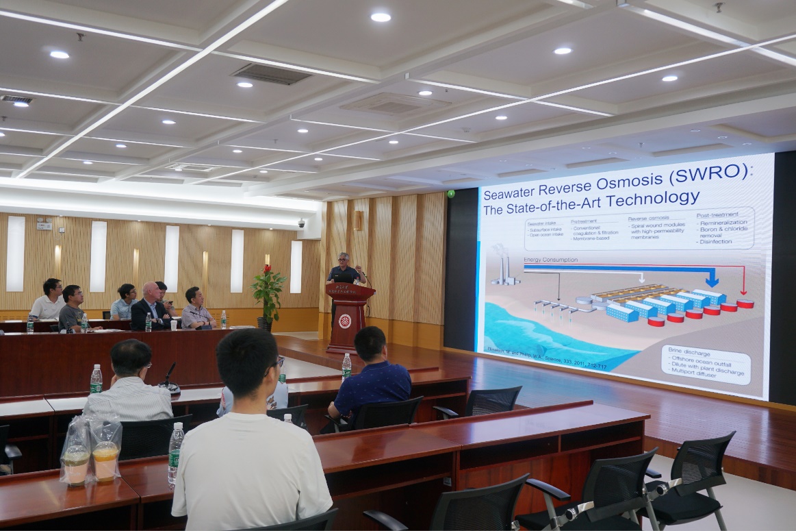 Alistair Borthwick教授是本年度北京大学“海外名家讲学”计划受邀人,同时也是我院客座教授,与我院建立了近20年的合作关系,目前在水力工程、流域管理、水处理等领域与我院正在开展合作。Menachem Elimelech教授是世界膜技术和环境纳米技术领域著名专家。会后,倪晋仁院士和我院多位老师,包括赵华章教授、要茂盛长聘教授、温东辉教授、晏明全副教授、孙卫玲副教授、童美萍研究员、刘思彤研究员、刘文研究员,就发展北京大学膜技术方向、甚至推动成立膜研究中心与Menachem Elimelech教授进行了深入交流。倪晋仁院士表示膜技术是新形势下现代环境工程学科发展的重要方面,双方表示今后将在科学研究、项目申请、成品开发、人才交流等方面逐步开展实质性合作。