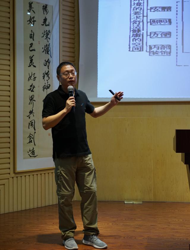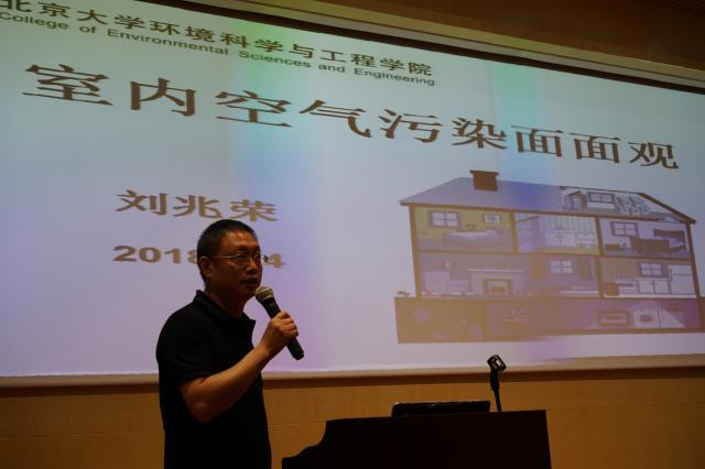 紧接着,环境科学与工程学院教师代表刘兆荣作题为“室内空气污染面面观”的讲座,讲座内容主要分为室内空气主要污染物成分、空气净化科技手段与有效方法等。刘老师讲到:“针对目前国内室内空气质量的情况,我们是否该去关注室内污染物成分?是否该去考虑什么样的空气质量指标应该被关注?”随着问题的提出,刘老师针对上述问题进行逐一解答,从建筑物着眼,介绍如何消除、改变、避免室内空气污染源;从空气净化角度入手,介绍了颗粒物过滤器、气态污染物的化学反应以及微生物污染去除技术。讲座最后,刘老师针对“国内推行绿色建筑”的政策情况与现场同学们进行交流与探讨,鼓励同学们关注室内空气质量情况,倡议保护环境从身边做起。