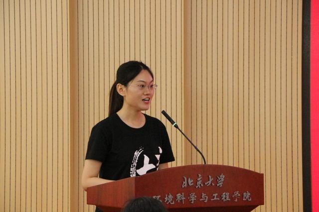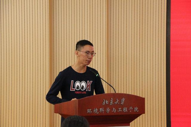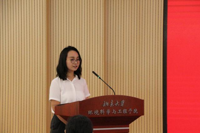 其后发言的是2018级博士研究生新生代表杨苏丁与2016级硕士研究生老生代表周丽玮。杨苏丁在发言中表达了圆梦燕园的喜悦和激动,北大兼容并包的氛围、学院优越完善的硬件设施和温暖和谐的师生关系让她放下了初入学的忐忑。“高山仰止,景行行止”,杨苏丁表示,学院科研前辈的足迹督促着她努力学习,不断探索,希望与同学们“在科研的道路上砥砺前行并乐在其中”。周丽玮以一个环院发展亲历者的视角,深情回忆了在北大环院度过的七年时光,并和新生们分享了三点心得体会:一是要充分利用好身边的资源,提升学术水平。二是要积极参与实践活动,善于反思总结,提升综合素质。三是要为自己进入北大环院感到光荣,但不要骄傲,而应踏实求学,认真做好科研。
