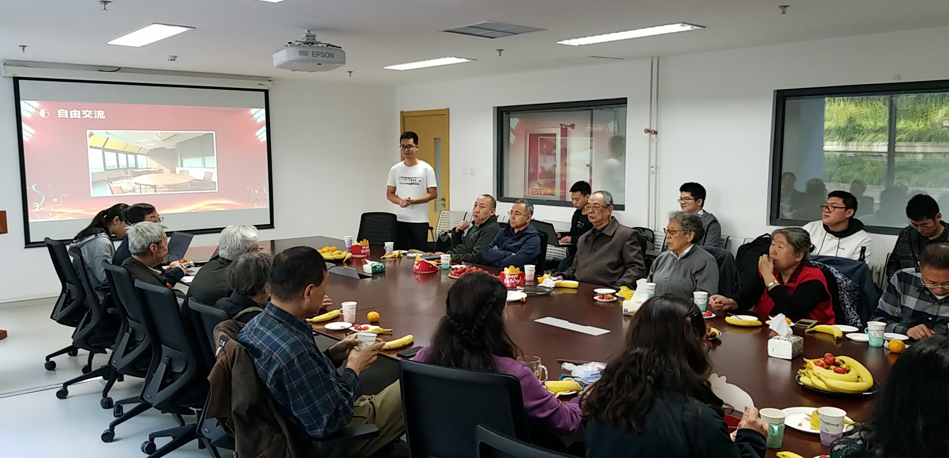 17日上午10点,随着学院宣传片播放完毕,正式拉开本次生日交流会的序幕。首先由环境科学与工程学院院长朱彤向生日寿星们以及受邀出席活动的教职工致以衷心祝福。他表示,今天是重阳节,感谢学院党委/工会/关心下一代工作委员会组织这次非常有意义的活动,这是学院第一次为教职工集体庆生,感谢环境学院老一辈的努力和付出,祝愿各位寿星生日快乐!祝福离退休老师们身体健康、中年老师们事业上百尺竿头更进一步,青年老师们能在事业家庭上更进一步!此外,学院党委副书记、工会主席张剑波对于学院教师的相关工作进行介绍。他讲到,学院将一如既往地为教职工们做好服务,开放环境大楼B107作为教师们交流讨论的活动场所,学院B102工会之家也购置了活动器械,可供老师们业余活动使用,学院尽心竭力为教师们办实事、解难题、送温暖,努力让环境学院成为老同志们永远温暖幸福的家。