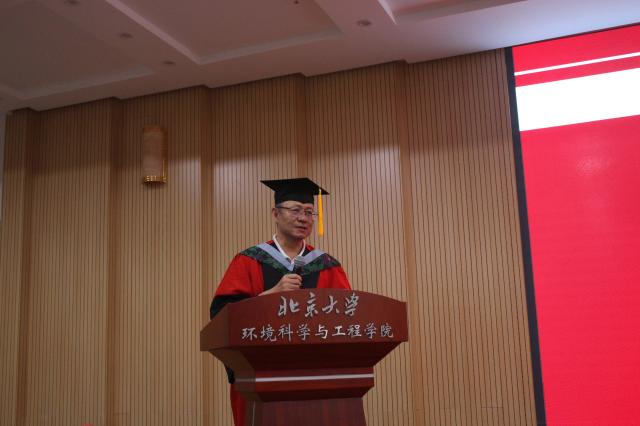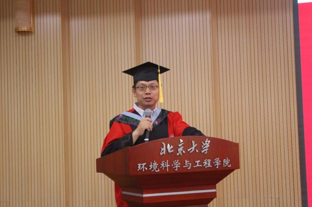 环境科学与工程学院陆克定长聘副教授作为学院教师代表发言。他首先指出,环境问题和健康问题是如今人民追求美好生活过程中的关键需求,也是党和国家的重大战略需求,我们应该为投身于这项美丽的、高深的和直接为人民服务的事业中感到荣幸和激动。陆克定充分肯定了本科毕业生,鼓励他们持续努力,收获更大的成功,并祝贺硕、博毕业生取得的优异成绩,北大研究生工作的洗礼也为他们面对未来的工作挑战做好了充分准备。最后,陆克定勉励大家在今后的生活中加强多方面的学习(如时间管理和领导力等),希望大家对未来充满憧憬、鼓起勇气、放平心态,在新的岗位上都取得好的成绩。