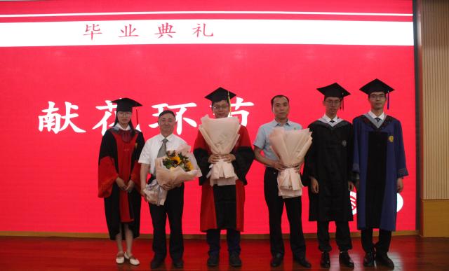 毕业生为毕业生家长代表、校友代表、教师代表献花